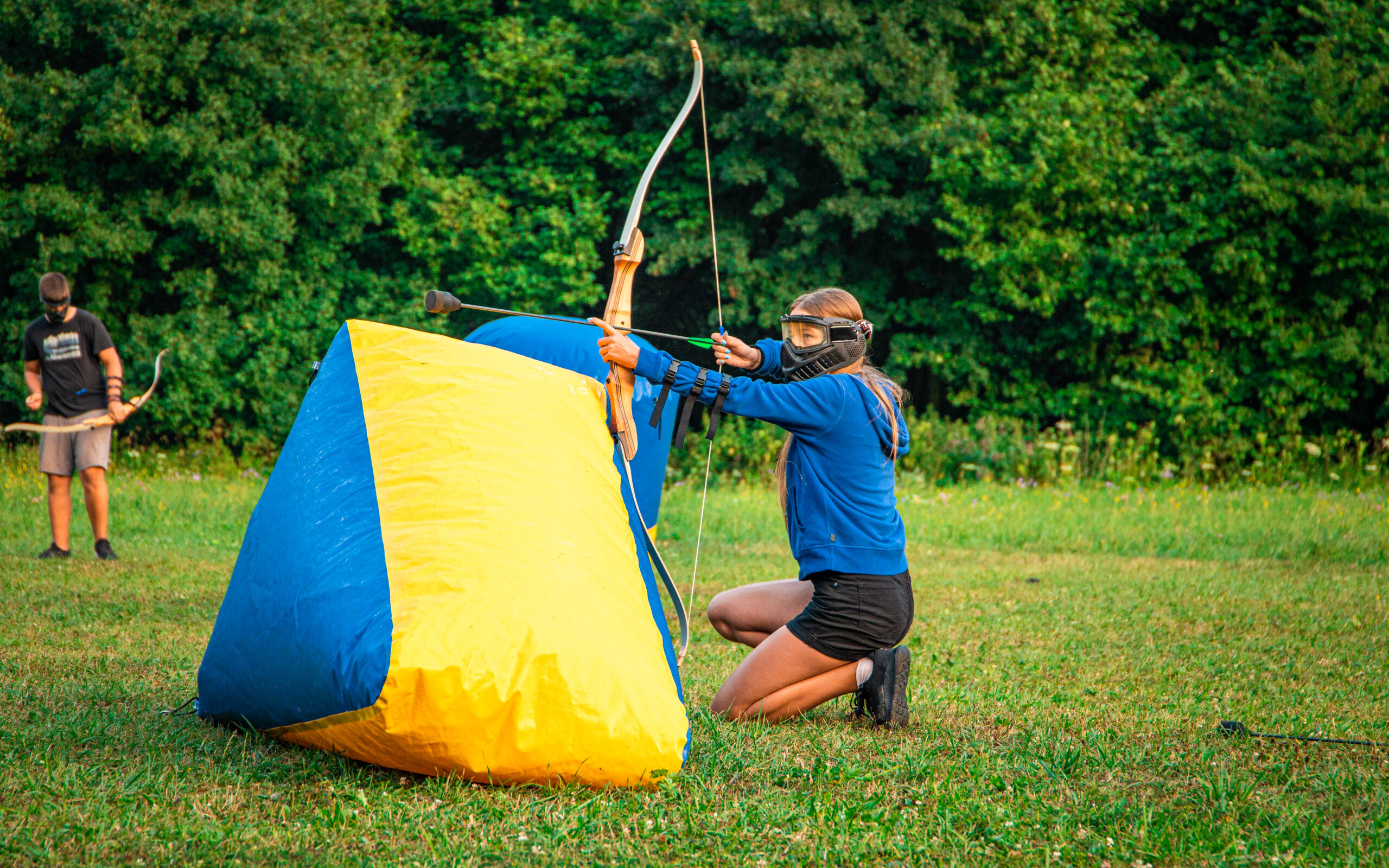 Het is een leuke en veilige activiteit waarbij je van achter obstakels met speciale pijlen op de tegenstander en de targets schiet.